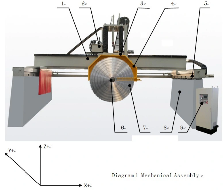 1,房粱零部件2、液压机站3、档板零部件4、水盖零部件5、纵梁零部件6、电主轴箱零部件7、树叶8、首要零部件9、规范面板开关。